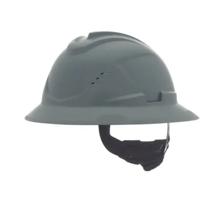 MSA 475367 V-Gard Slotted Full-Brim Hat, Gray, w/Fas-Trac III Suspension