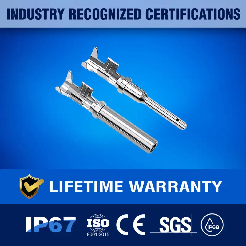 - [Global Approvals] Size 16 Stamped and Formed Solid Pins/Sockets from New Age America, including Deutsch Equivalent, Male and Female, Closed and Open Barrel types, meet Rigorous Standards, certified and listed under CE, ISO 9001, RoHS, REACH. Manufactured in an ISO-rated facility, these Connectors are designed to meet the Highest Industry Requirements for Quality and Safety. Their Comprehensive Certifications ensure that each Connector is ideal for Electrical and Automotive industries