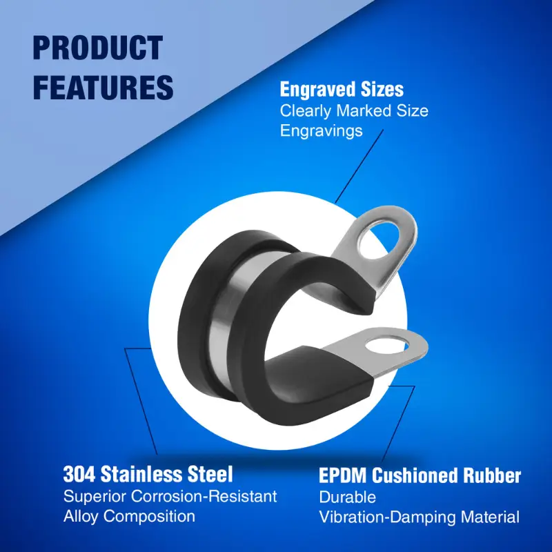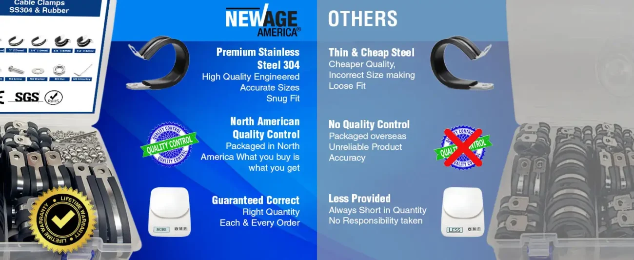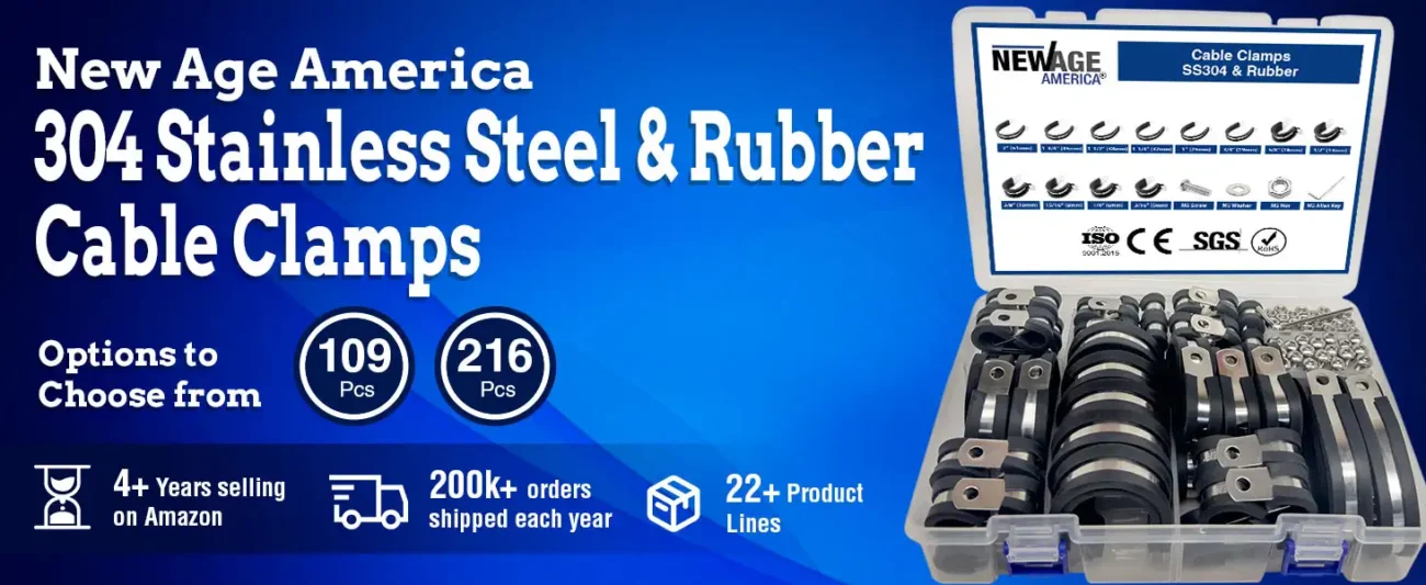 • [High-Quality Construction] New Age America’s Cable Clamps are Manufactured with Excellence, using Premium Materials like 304 Stainless Steel and High-Quality Rubber. This Combination offers Superior Heat, Abrasion, Moisture, and Rust Resistance, ensuring Durability and Long-Lasting Performance. Ideal for a Wide Range of Applications, these Clamps are Perfect for Securing Cables in Automotive, Industrial, or Residential Settings where Environmental Resistance is Crucial