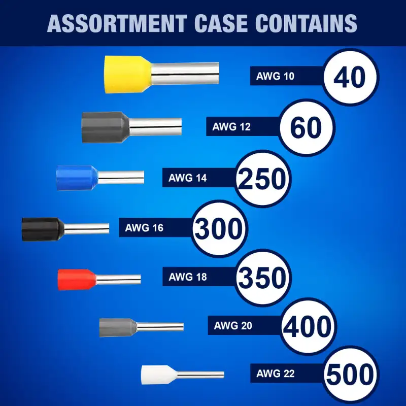 - [Assortment Case] Store Spare Wire End Ferrules in Our Heavy-Duty, Convenient Wire Ferrule Kit from New Age America. Each Ferrule, Including Wire Ferrules and Ferrule Crimp Connectors, Is Designed for Easy Access and Organization, Ensuring You Always Have the Right Type at Hand for Any Installation or Repair. This Assortment Case Is Crafted to Prevent Even the Smallest Ferrules from Mixing, Allowing for Efficient Management of Various Sizes and Types of Wire End Ferrules, Making This Essential