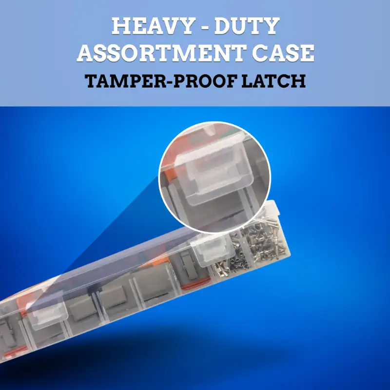 - [Assortment Case] Organize Your Spare Deutsch Equivalent DT Series Connector, Pins, and Sockets Effortlessly in the Heavy-Duty and Convenient Deutsch Connector Assortment Case Provided by New Age America. This Durable Case Ensures Easy Access and Organization of Your Automotive Electrical Connectors, Facilitating Quick Repairs and Installations Whenever Needed. Available in 2, 3, 4, 6, 8, and 12 Pin Configurations, Offering Versatility for Various Wiring Applications