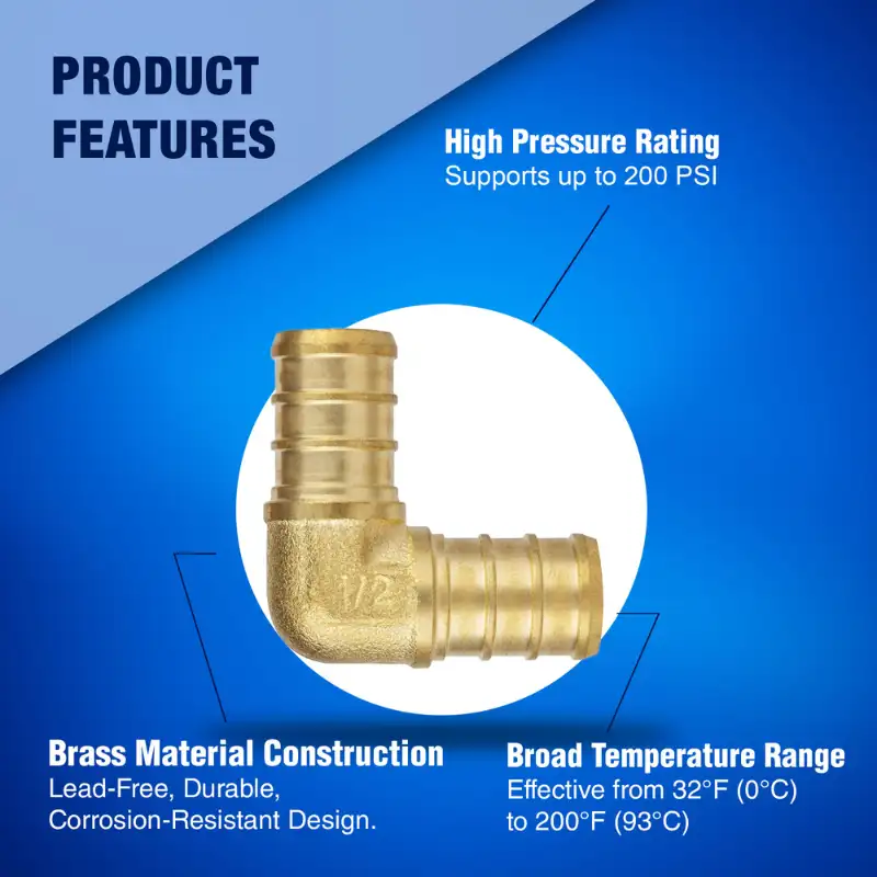 - [Lifetime Warranty] Every PEX Crimp Fitting from New Age America, including Elbows, Tees, and Couplings, is backed by our Exceptional Lifetime Warranty. These Plumbing Fittings are crafted from High-Quality Brass, which is Abrasion-Resistant and ideal for preventing Corrosion, Scratches, and Wear. Designed to withstand conditions up to 200°F and 200 PSI, their Durability and Performance ensure Long-Lasting Reliability. These PEX Fittings operate efficiently in temperature ranging from 32℉ to 200℉