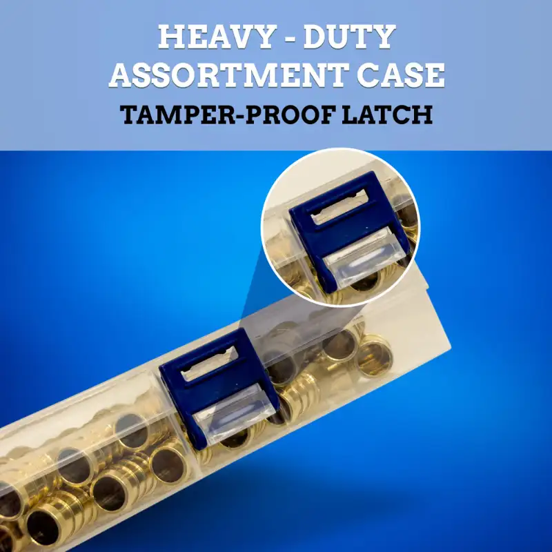 - [Assortment Case] Store Spare PEX Crimp Fittings, including Elbows, Tees, and Couplings, in our durable Assortment Case from New Age America. This heavy-duty, convenient, and easy-to-use kit ensures that you always have the right type of PEX Fitting at hand for any installation or repair. Each Plumbing Fitting is designed for Easy Access and Organization, making it an essential tool for any plumbing job