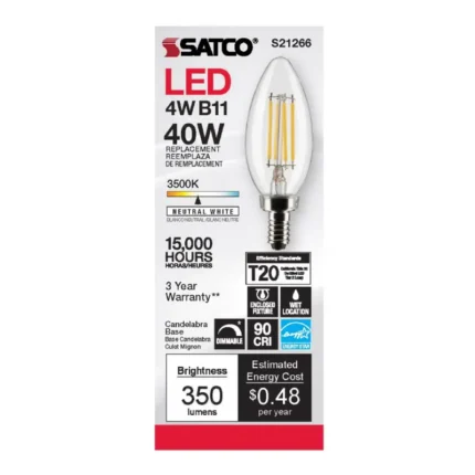 Satco S21364 8 Watt ST19 LED; Clear; Medium base; 90 CRI; 3000K; 120 Volt