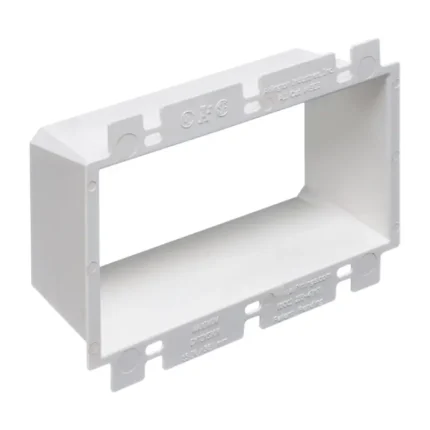 Now available in three- or four-gang, our newest box extenders have a slightly larger flange that provides extra device support when the wall opening is miscut or oversized. They accommodate midi or jumbo cover plates – and they’re trimmable along the perforated flange for use with standard plates. Best of all they cost the same as our ‘regular’ flange box extenders. If you normally use a midi plate these are the box extenders for you!