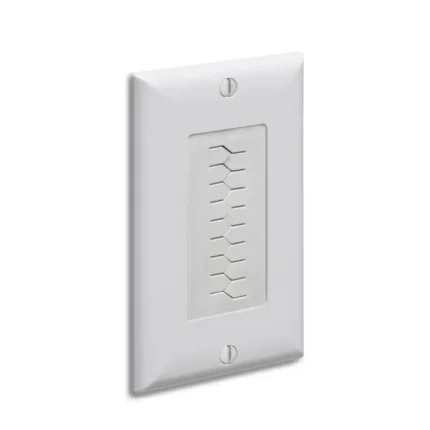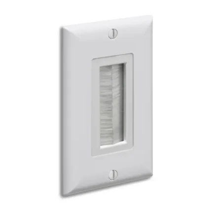 Low-Voltage Wall Plate. Reversible non metallic cable entrance hood for existing cables. Single Gang. Color White. Decorator Device Style. Includes two #6 screws. Provides widest opening for cables with large connectors.