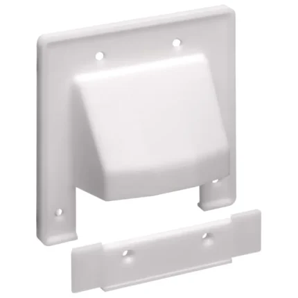 Reversible Two-Piece Low-Voltage Cable Entrance Plate. Reversible non metallic cable entrance plate for existing cables. Single Gang. Includes screws that match plate color. Color White. Has removable lower plate for easier access to cables that are already run.