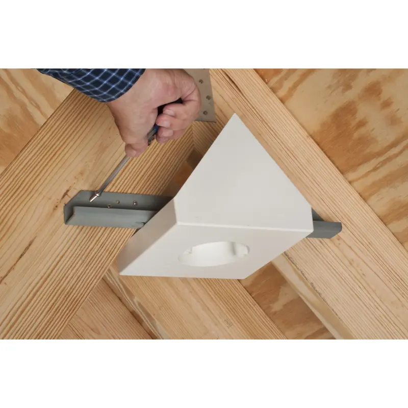 Arlington FBB900 Mounting Box for Cathedral Ceilings with 80° Angle or Greater. Installed 16″ Steel Mounting Bracket.
