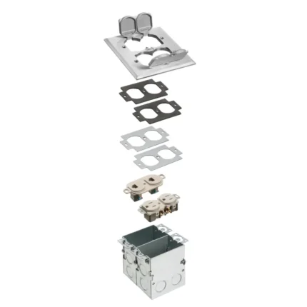 Arlington FLB5552NL Combo Floor Box Kit with Installed Low Voltage Divider – Nickel