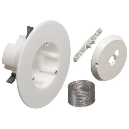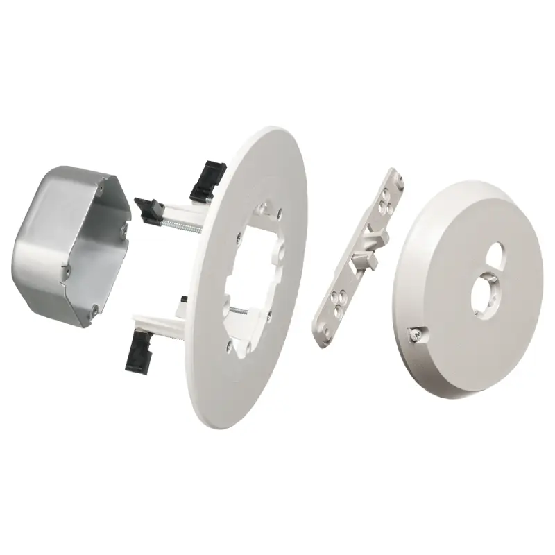 Use Arlington’s CAM-LIGHT™ KIT to install any security camera (with base diameter up to 7″) on a suspended or drywall ceiling panel. For power or low voltage, it installs FAST with a 4″ hole saw, saving time and money. It’s a tested assembly that holds up to 50 lbs on a suspended or drywall ceiling. It fits any security camera hole pattern because you drill the holes in the mounting plate. Larger cameras (base diameter from 4.5″ to 7″) mount directly to the box flange