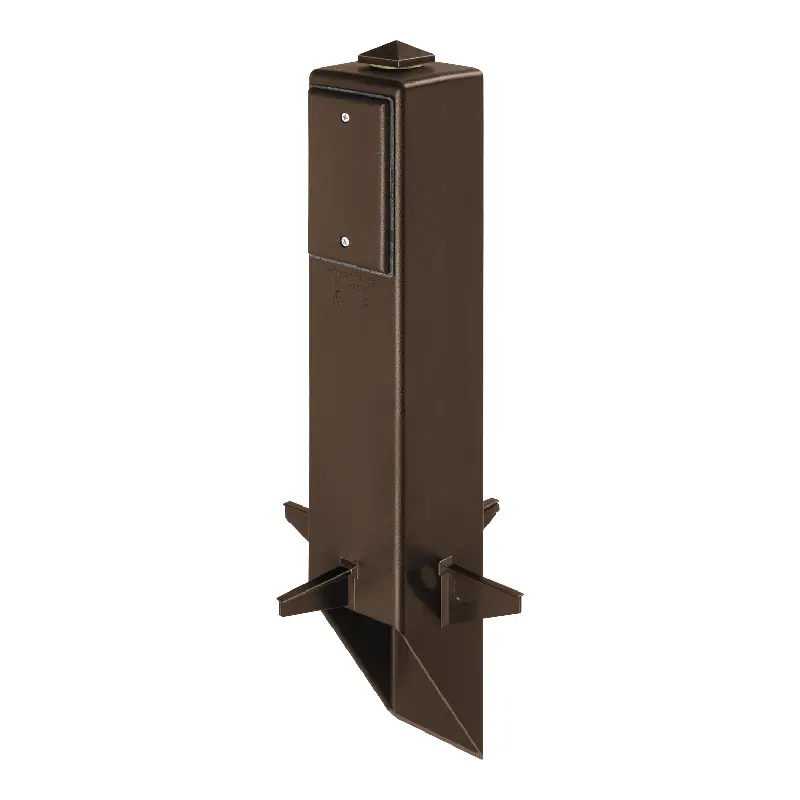 The Arlington GP19BRGC is a 19.5-inch Gard‑N‑Post™ support post, ideal for mounting light fixtures or outdoor electrical devices. Crafted from UV‑resistant, molded-in black plastic, this rugged in-ground post features a built-in two-gang electrical box designed for either back-to-back power devices or a combination of power and low-voltage wiring.