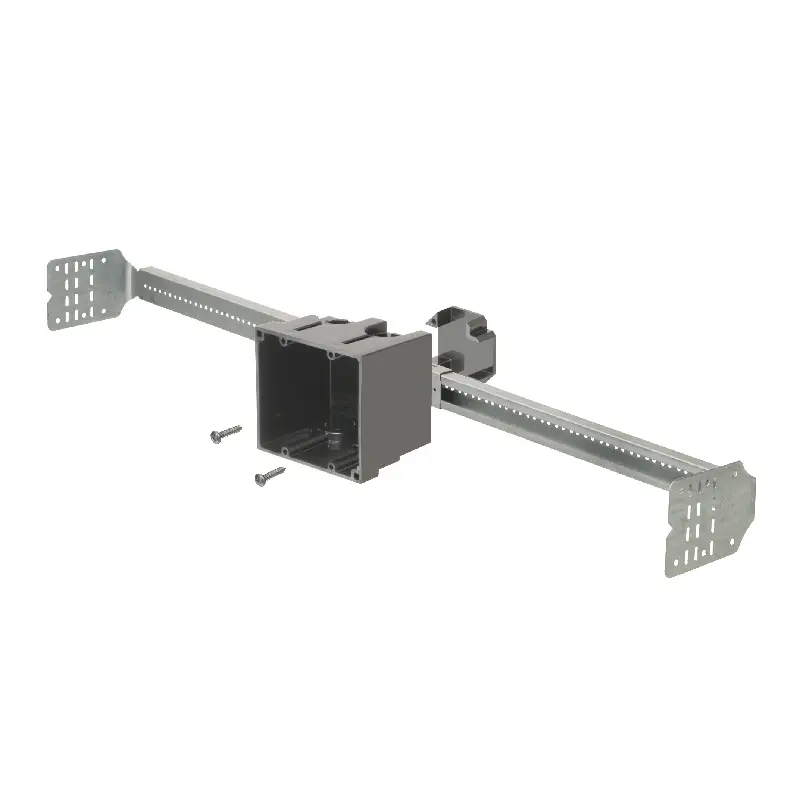 Here’s the easy, NEAT way to mount single or two gang boxes between wood or metal studs. Arlington’s steel SliderBar™ looks great and saves about 20 minutes per box over cutting, nailing and placing extra 2x4s.