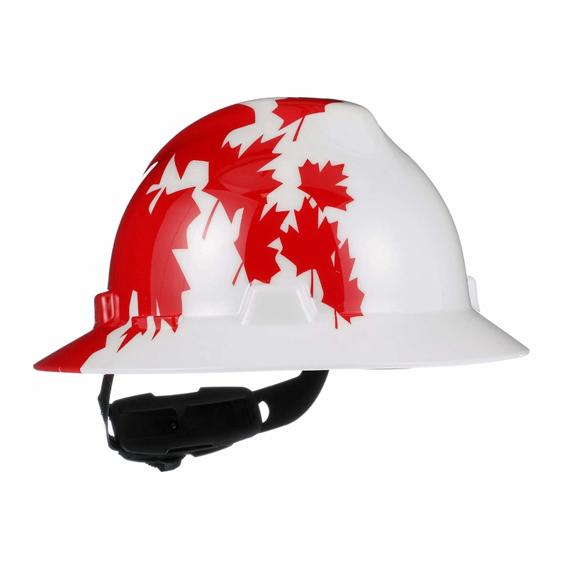 MSA 10082234 Canadian Freedom Series V-Gard Slotted Protective Cap, White w/Red Maple Leaf