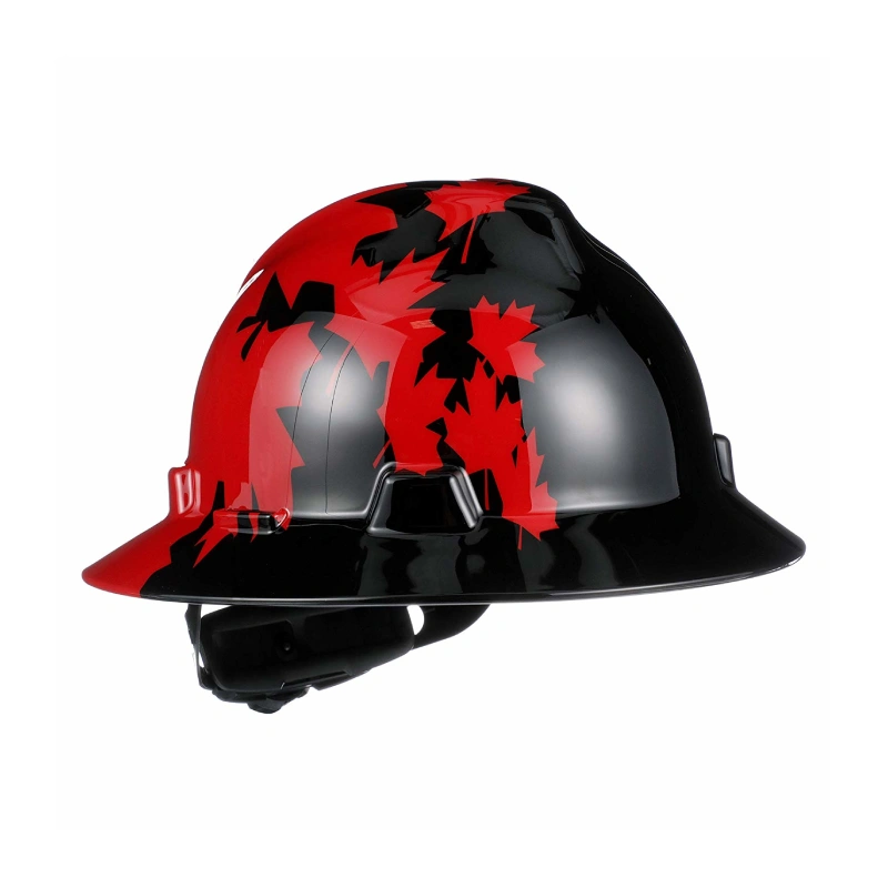 MSA 10082235 Canadian Freedom Series V-Gard Slotted Protective Cap, Black w/Red Maple Leaf