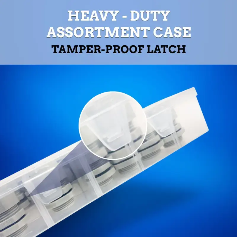 - [Assortment Case] Store Spare NPT Cable Glands in our Heavy-Duty, Convenient, and Easily Accessible Strain Relief Kit from New Age America. Each Cable Gland is designed for Easy Access and Organization, ensuring that you always have the Right Type of Nylon Cord Grip at hand for any Installation or Repair. This Assortment Case allows for Efficient Management of Various Sizes and Types of Cable Glands, making it Essential for maintaining System Integrity and Reliability in any setting.