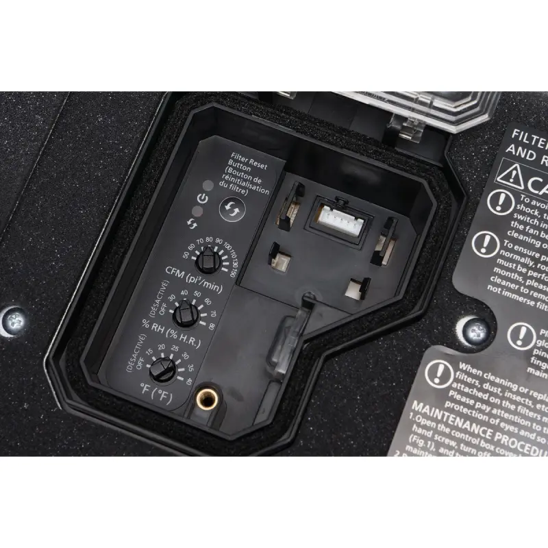 Humidity Setting: Provides a customized, fresh air supply based on the humidity conditions of the incoming air. The fan automatically shuts off (or not turn on) when the outside relative humidity is higher than the setting on the humidity dial (from 30% to 80% RH).
