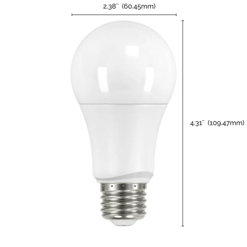 The Satco S29589 is a 4-pack of energy-efficient 9.5-watt A19 LED bulbs that deliver reliable, soft white illumination. With a warm 3000K color temperature and wide 220° beam angle, these frosted bulbs are ideal for general-purpose lighting in kitchens, bedrooms, and hallways. Designed with a medium E26 base and non-dimmable operation, they offer hassle-free installation and long-lasting performance.