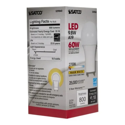 Satco S29840 9.8 Watt; A19 LED; 2700K; GU24 base; 220 deg. Beam Angle; 120 Volt