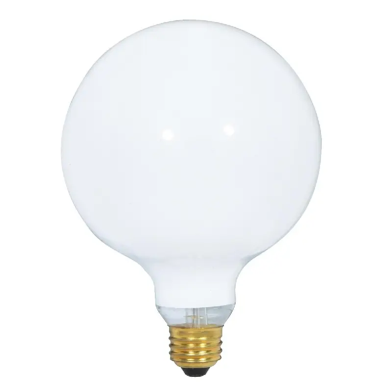 Satco S3001 40 Watt G40 Incandescent; Gloss White; 4000 Average rated hours; 280 Lumens; Medium base; 120 Volt