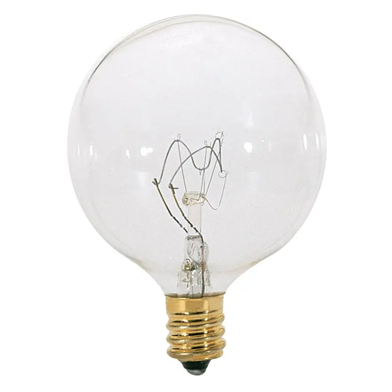 Satco S3822 25-Watt G16½ Incandescent Bulb – Clear, Candelabra Base, 120V
