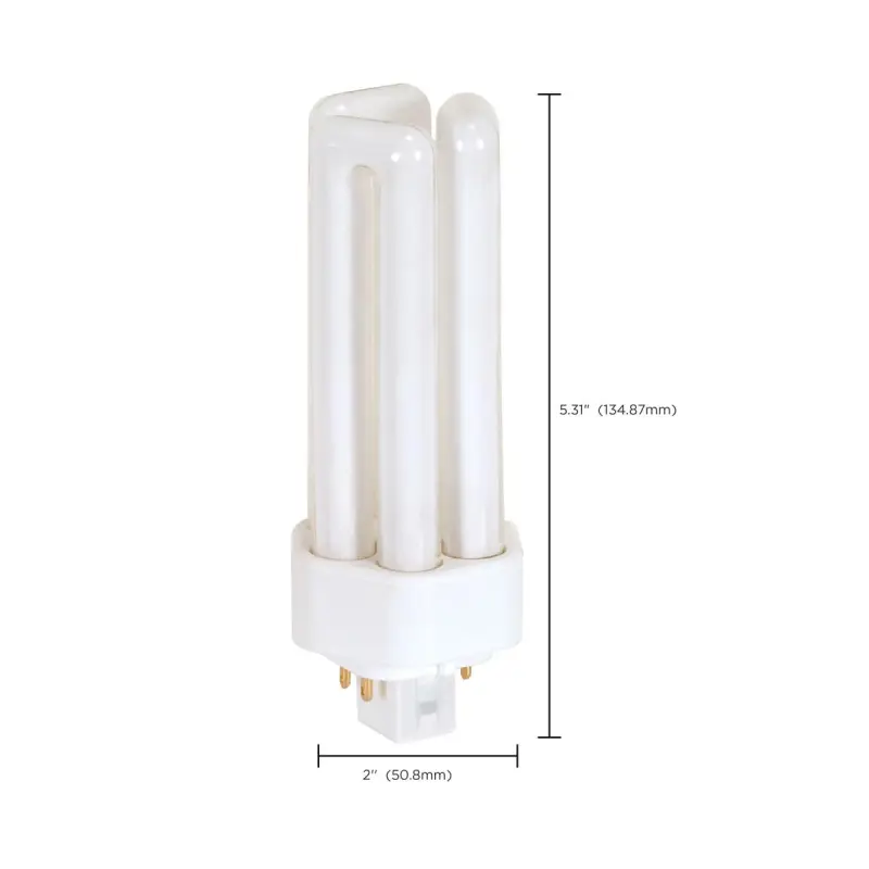 The Satco S8345 compact fluorescent lamp provides reliable, energy-efficient lighting with a warm 2700K color temperature. Designed with a GX24q-3 4-pin base, this 26-watt lamp is ideal for commercial, residential, and hospitality applications requiring long-lasting performance and consistent illumination. With an 82 CRI, it delivers natural, true-to-life color for comfortable environments.