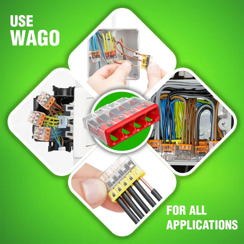 - [Save Your Wrists & Re-Usable!] WAGO Push-In Connectors Are Engineered to Make Wire Splicing Faster and Easier Than Ever, Providing the Reliability You Expect from WAGO. Designed for Quick, Secure Connections Without the Need for Tools, These Connectors, Including the WAGO 2773 PUSH WIRE Series and Other Push-In Models, Enhance Productivity in Any Setting. Their Innovative Design Allows for Repeated Use, Making Them a Versatile and Dependable Choice for All Your Electrical Connector Needs