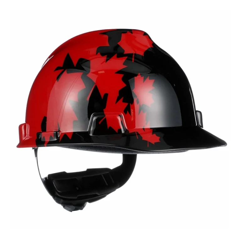 MSA 10082233 Canadian Freedom Series V-Gard Slotted Protective Cap, Black w/Red Maple Leaf