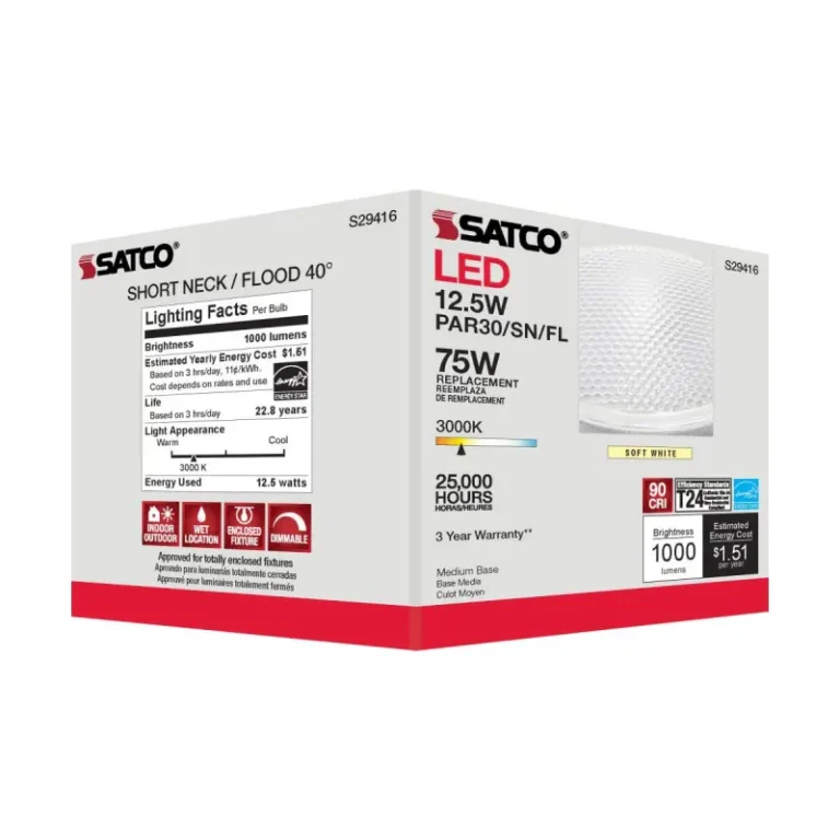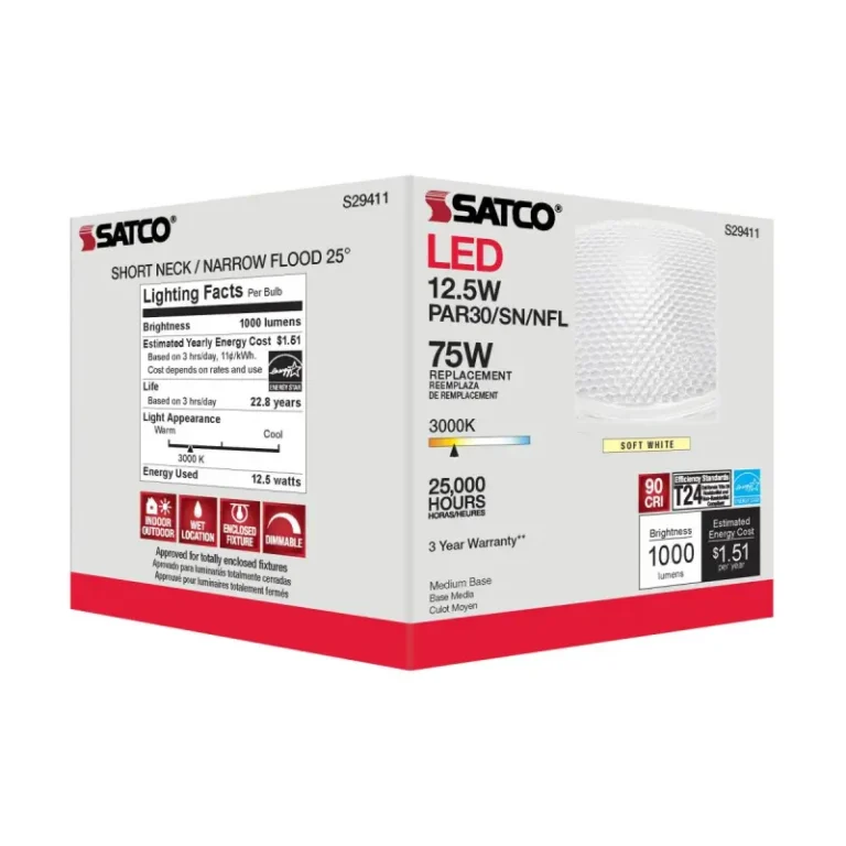 Satco S29411 – 12.5 Watt; PAR30SN LED; 3000K; 25 deg. Beam Angle; Medium base; 120 Volt