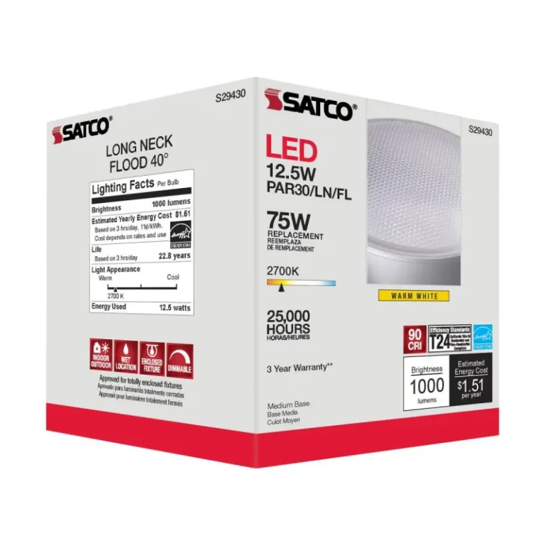 Satco S29417 – 12.5 Watt; PAR30SN LED; 3500K; 40 deg. Beam Angle; Medium base; 120 Volt