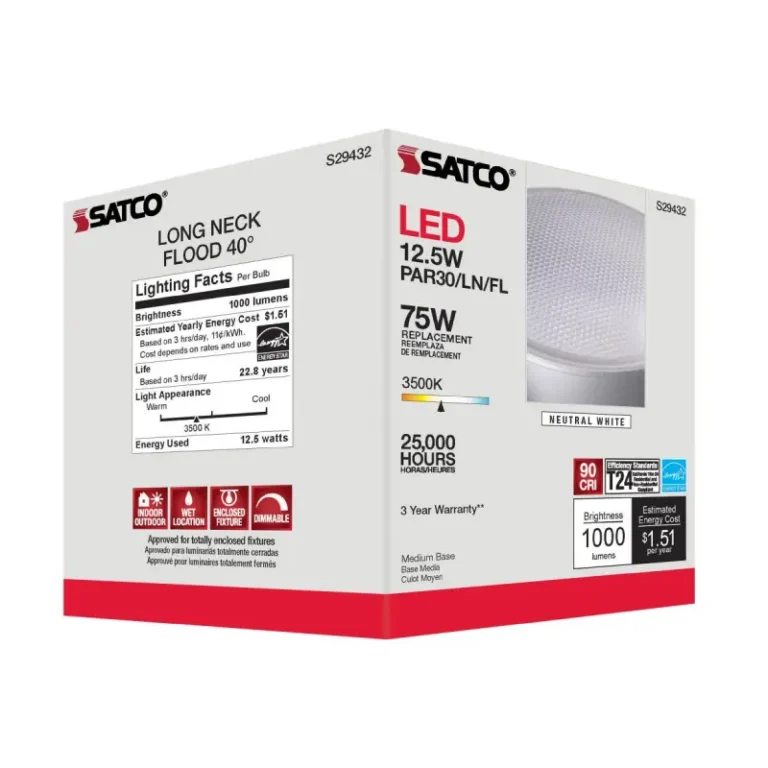 Satco S29432 – 12.5 Watt; PAR30LN LED; 3500K; 40 deg. Beam Angle; Medium base; 120 Volt