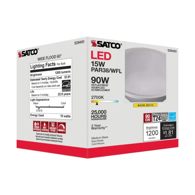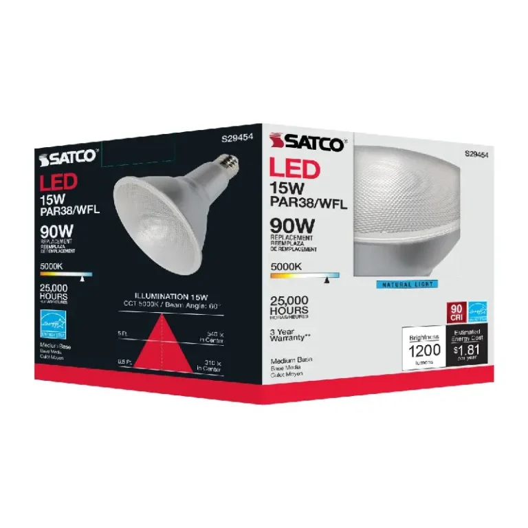 Satco S29450 15 Watt; PAR38 LED; 2700K; 60 deg. Beam Angle; Medium base; 120 Volt