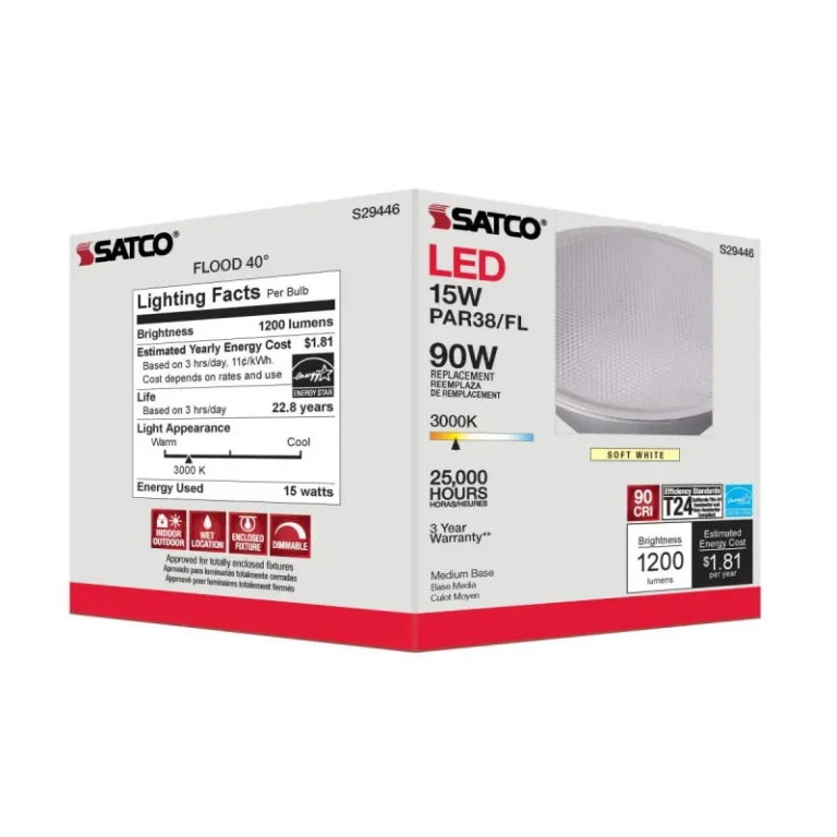 Satco S29446 15 Watt; PAR38 LED; 3000K; 40 deg. Beam Angle; Medium base; 120 Volt